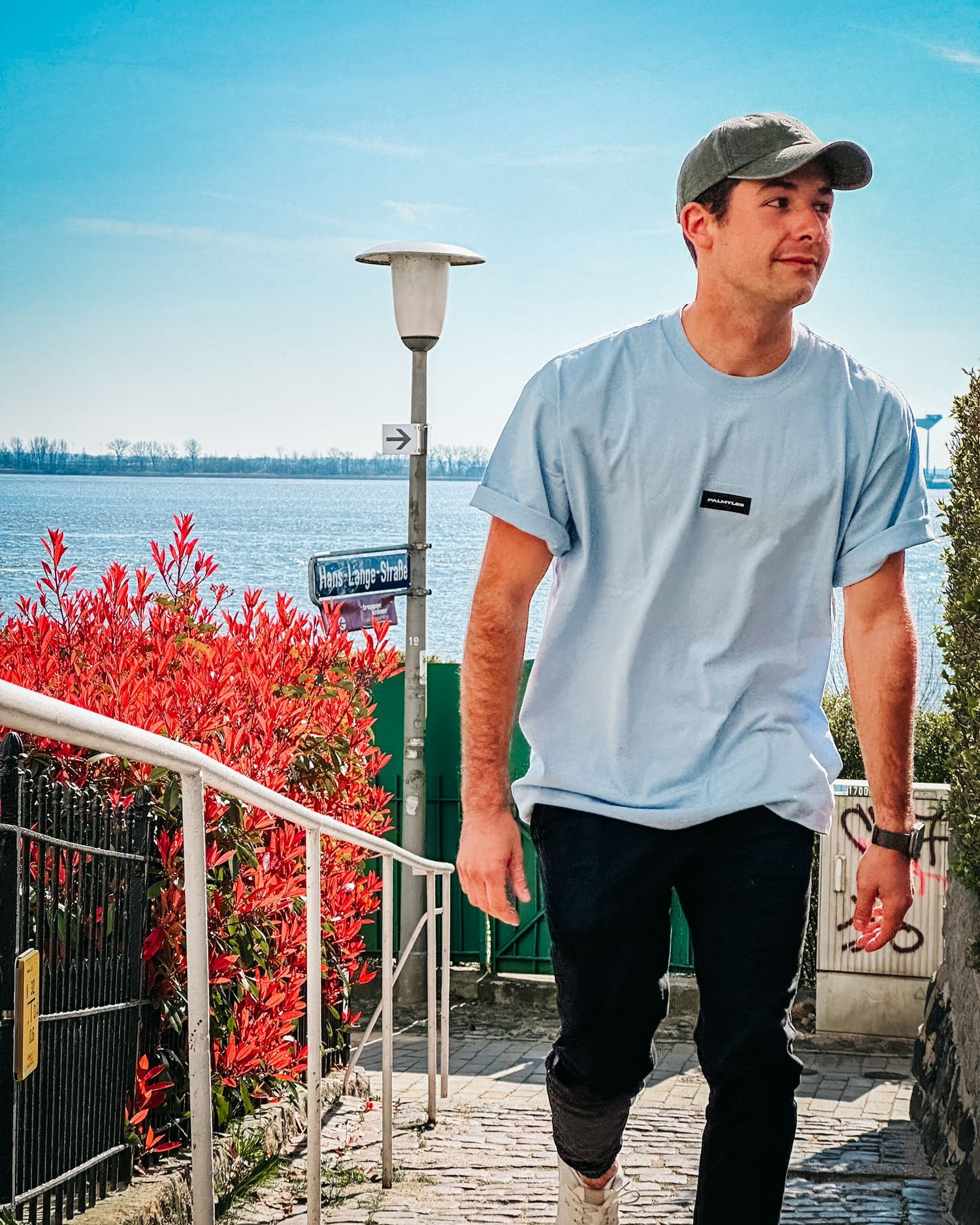 Sommerliches T-Shirt in einem hochwertigen Stoff aus Portugal und handgenähtes Label auf der Brust.